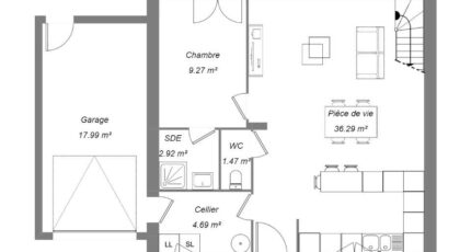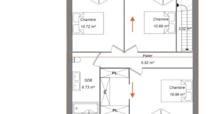 Plan maison 5 pièces 4 chambres Surface maison 90 à 110 m2