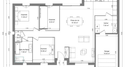 Plan maison 4 pièces 3 chambres Surface maison 90 à 110 m2